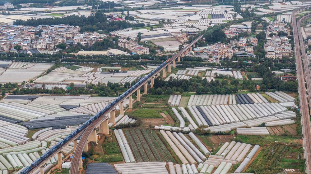 它连接起中国东部沿海、内陆地区、西部边境与东南亚国家市场,提高了中老铁路运力,降低了货物运输成本,有力带动铁路沿线地区经贸发展。图为10月8日,“沪滇·澜湄线”国际货运班列驶出昆明市王家营西站。(图片来源:新华社)