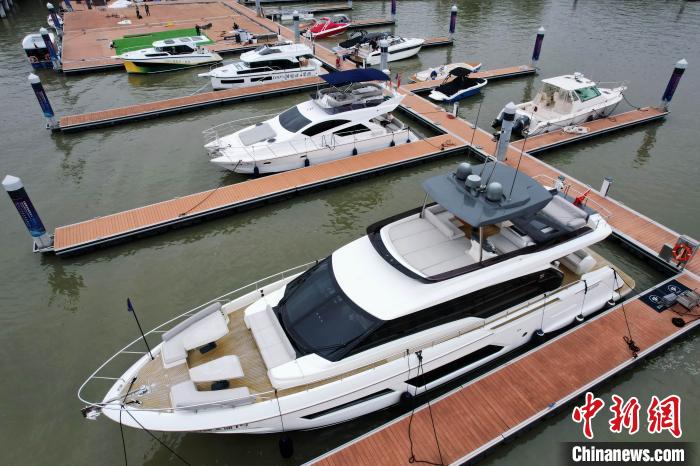 10月11日,陆上展示的参展游艇。(图片来源:中新网)
