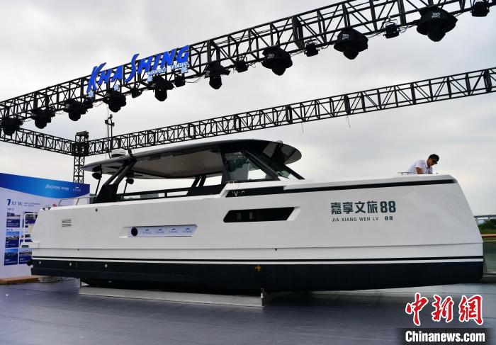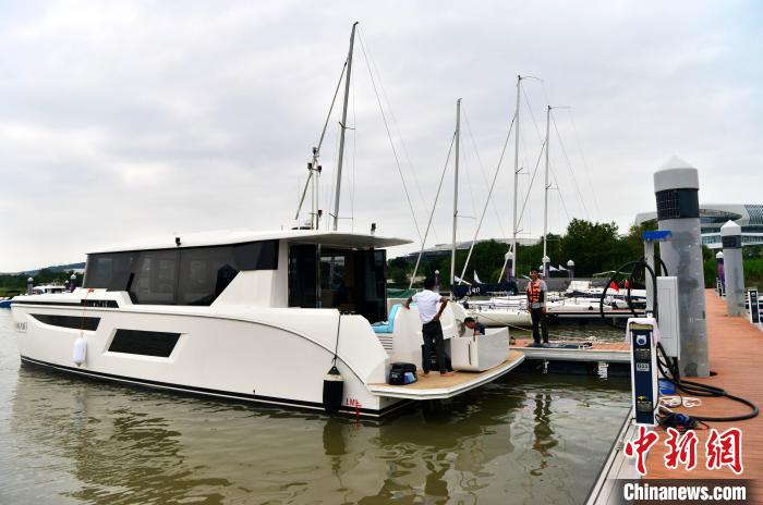 水上展示的电动游艇。(图片来源:中新网)