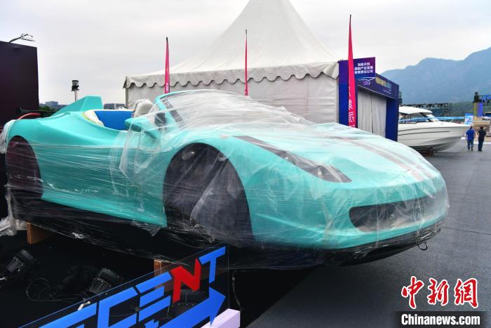 陆上展示的超跑汽车艇。(图片来源:中新网)