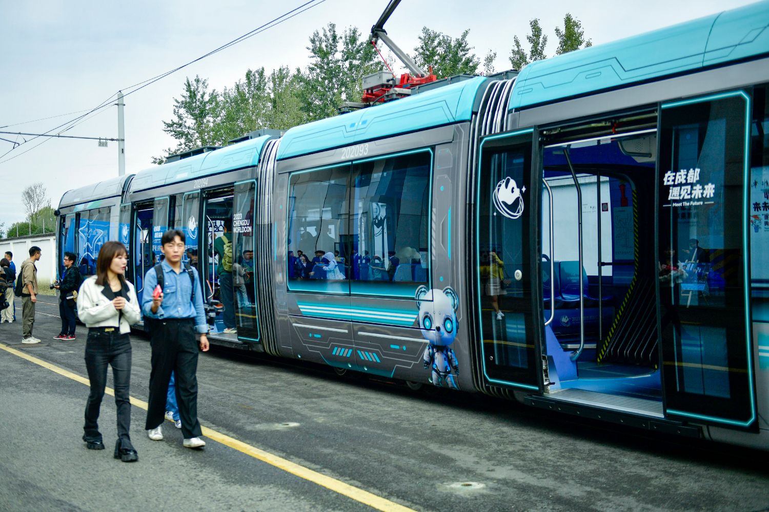 10月13日,2023成都世界科幻大会主题车站和列车在四川成都有轨电车蓉2号线正式上线运行,给乘客带来别样的科幻体验。