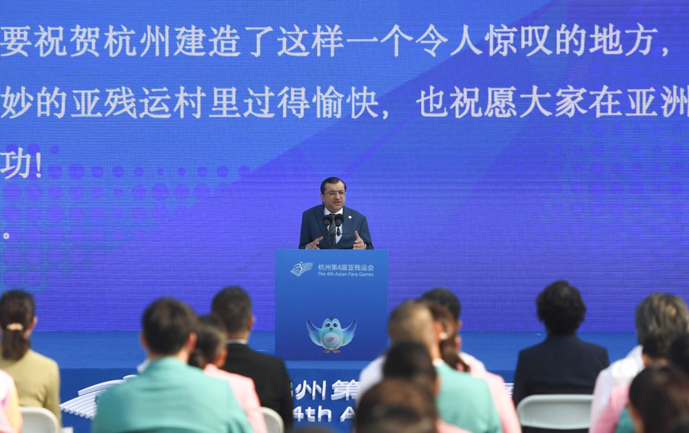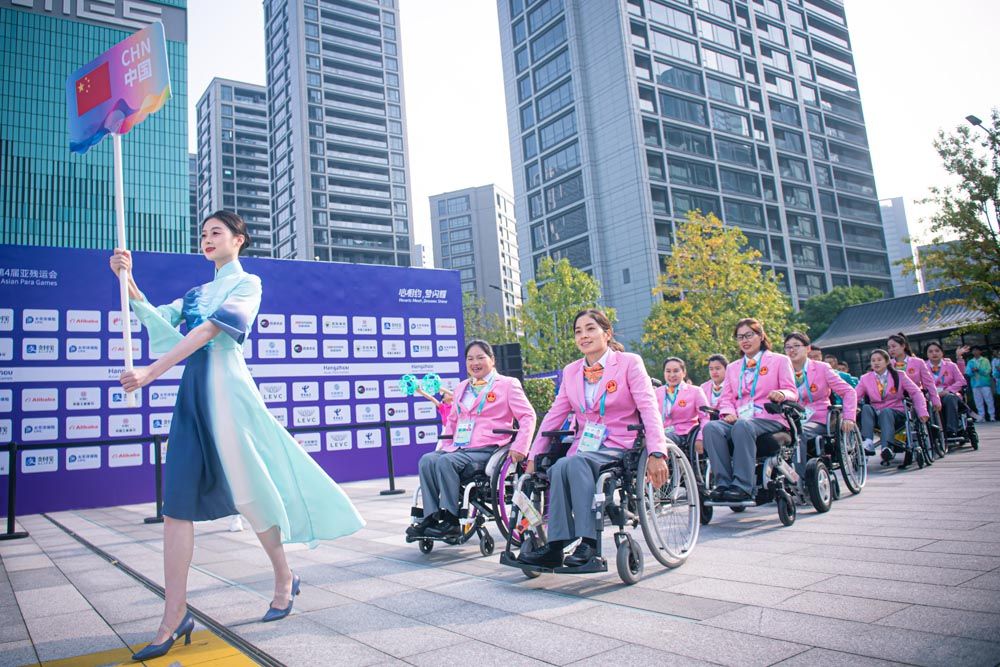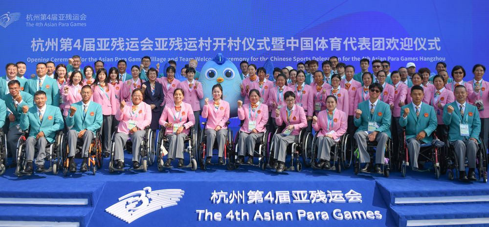 16日,杭州亚残运村举行开村仪式暨中国体育代表团欢迎仪式,标志着亚残运村正式投入赛时运行。