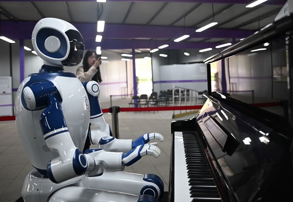 亚残运村分级综合中心内的钢琴机器人引人关注。