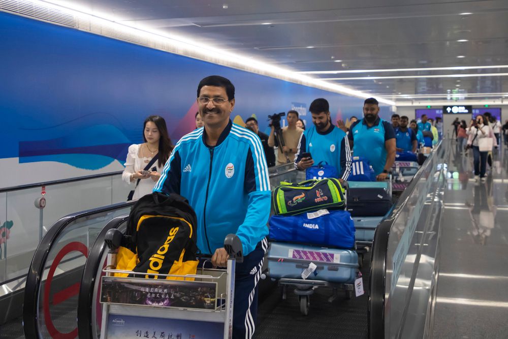 10月14日,来自印度的亚残运会赛事相关人员通过杭州萧山机场的亚残运会专用通道。