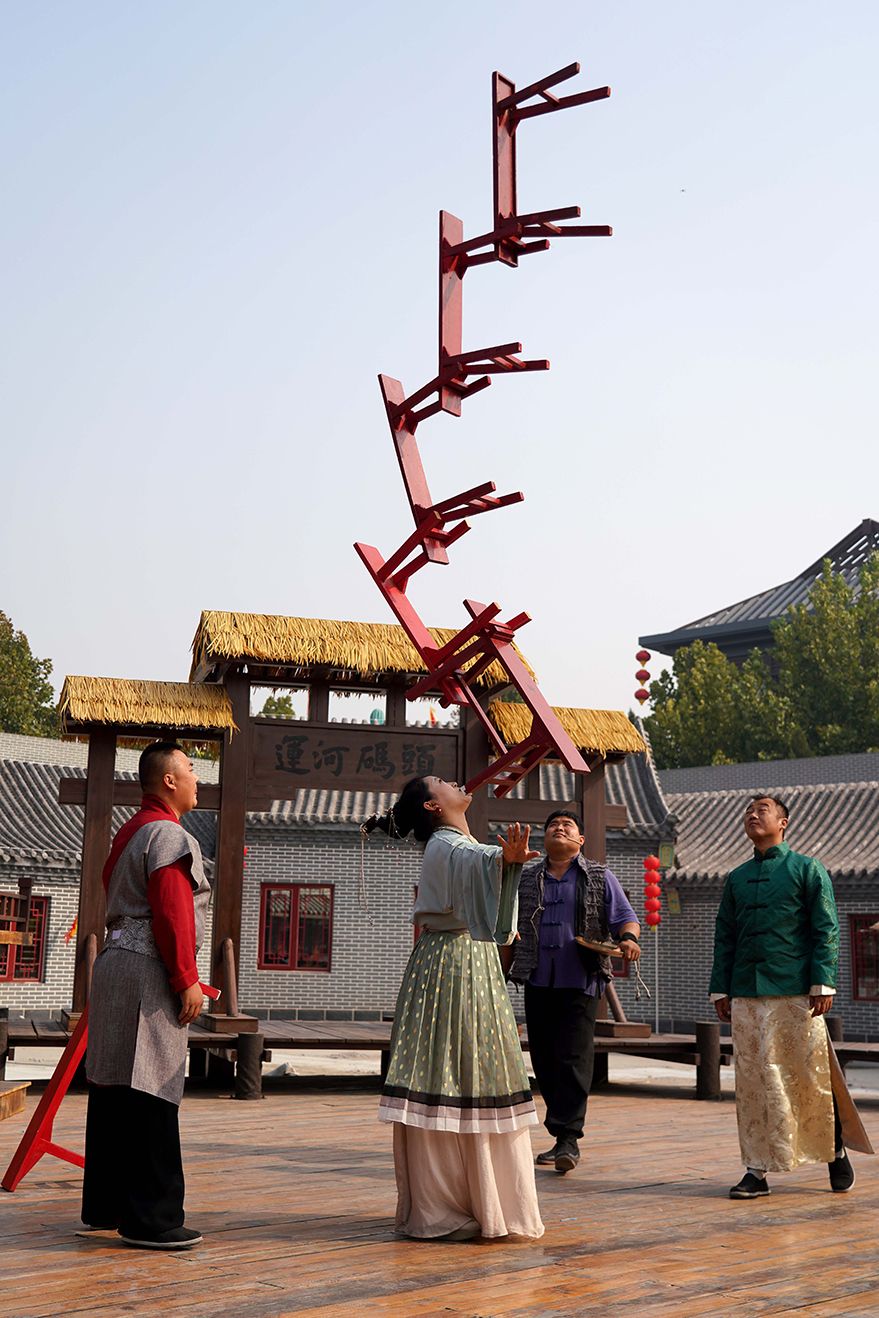 10月17日,杂技演员在吴桥杂技“九月庙会”上表演杂技节目。(图片来源:本文图片均自新华社)