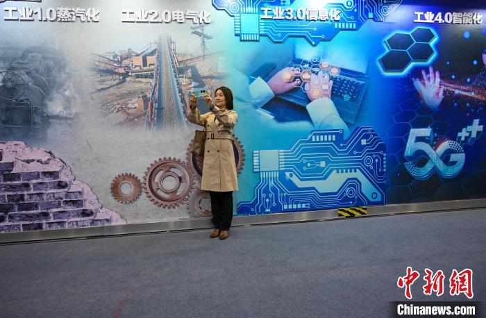 图为观众在工业互联网创新成果展上拍照。(图片来源:中新网)