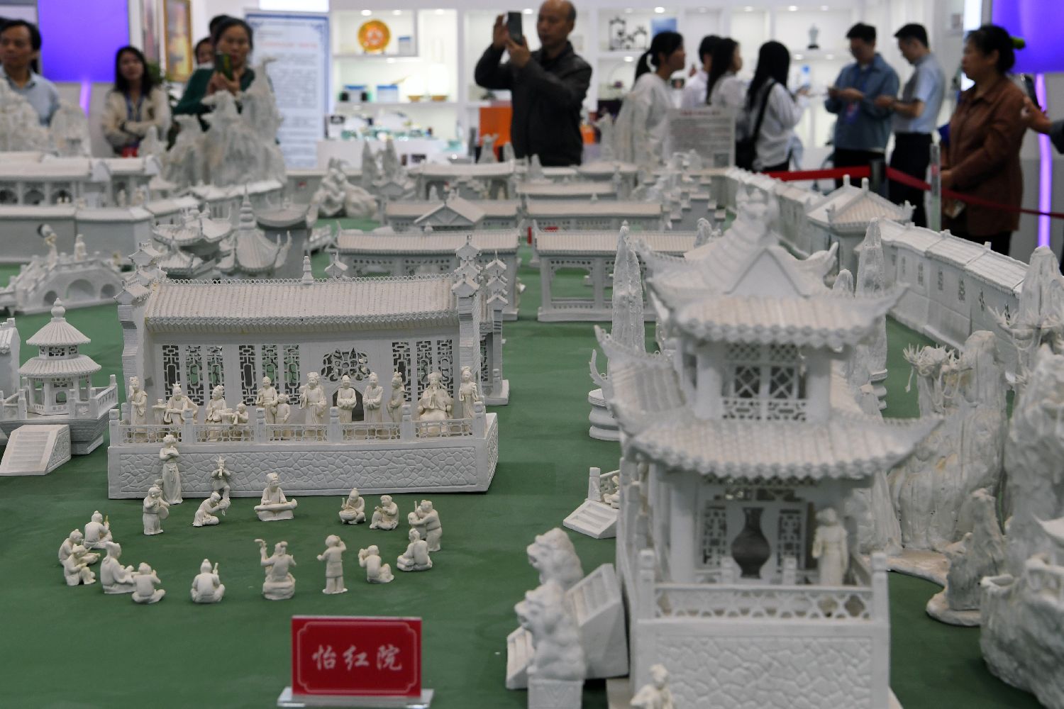本届瓷博会以“瓷行天下、贸连全球”为主题,以陶博城满铺开业为契机,对瓷博会展览展陈进行全面优化升级,展览面积达13万平方米。图为人们在瓷博会现场欣赏展品《瓷造大观园》。(图片来源:新华社)