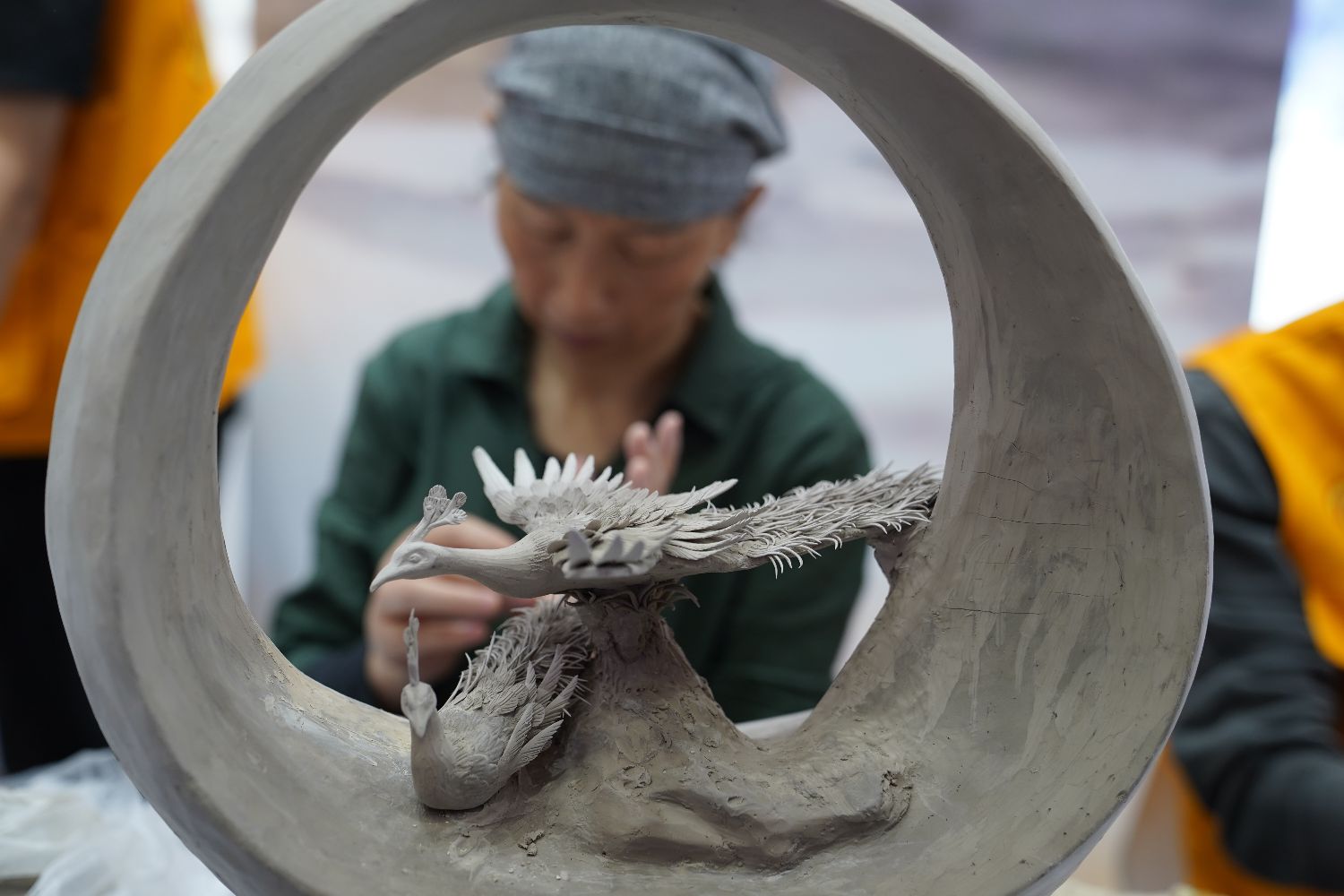 自2004年以来,中国景德镇国际陶瓷博览会已经成功举办19届。本届瓷博会将更多文化元素融入各个环节,展示景德镇千年古镇、国际瓷都深厚的文化底蕴和艺术魅力。图为在瓷博会瓷都工匠技艺展示馆,一名“瓷都工匠”在展示捏雕技艺。(图片来源:新华社)