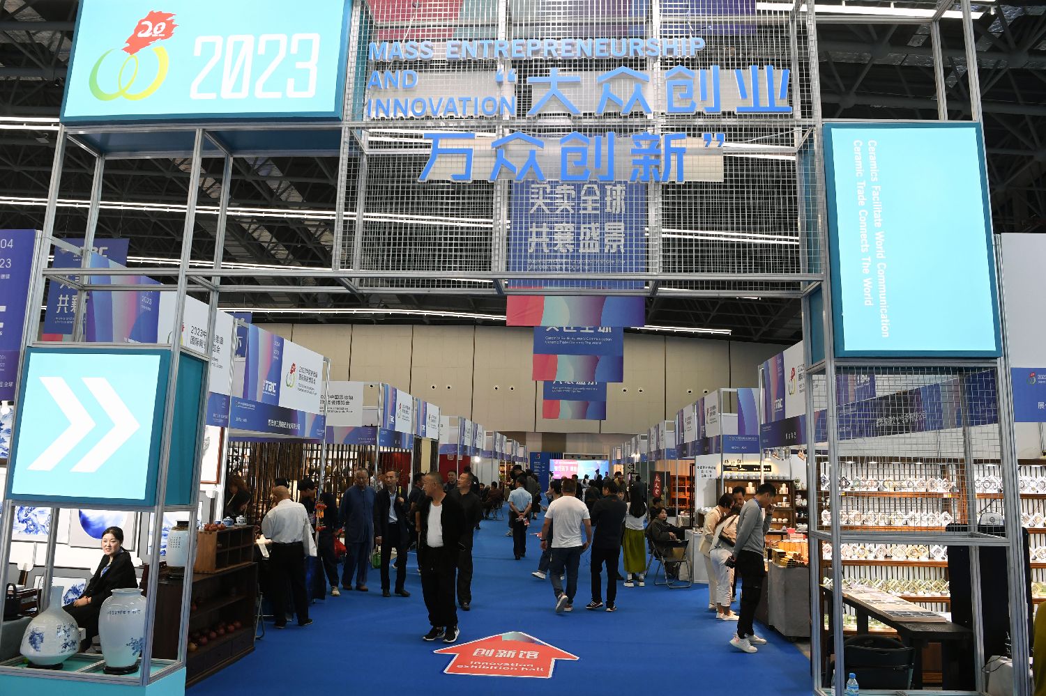 图为10月18日拍摄的瓷博会大众创业万众创新展区。(图片来源:新华社)