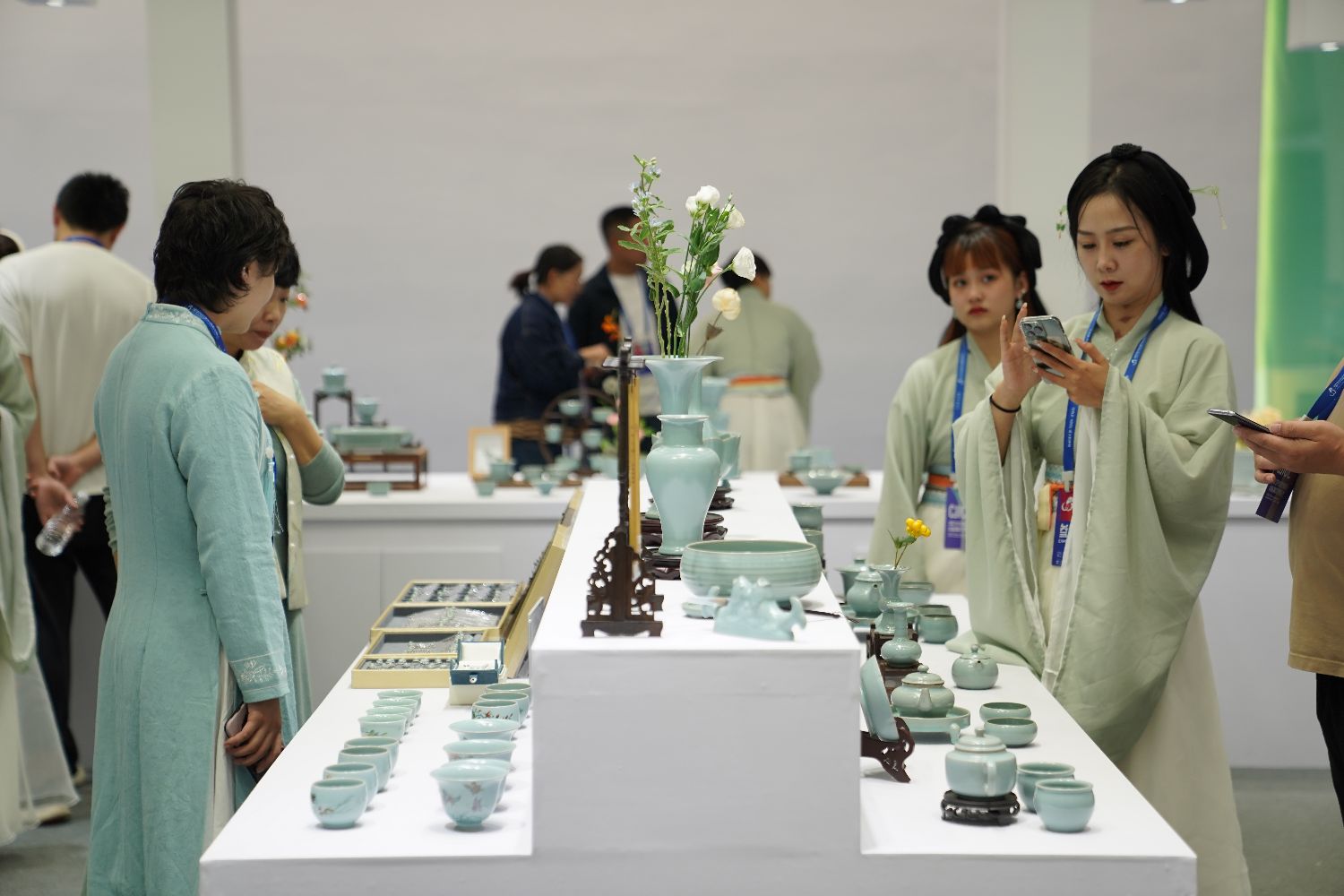 图为人们在瓷博会汝窑展台参观。(图片来源:新华社)
