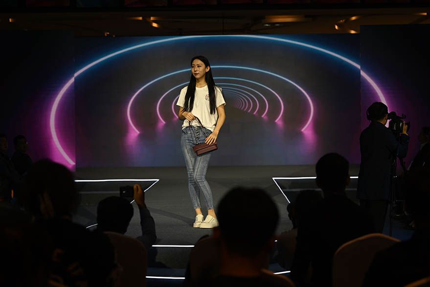 10月18日,模特在博览会上走秀。