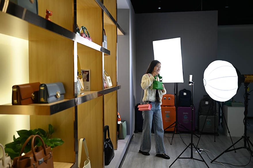 10月18日,参展商在博览会上进行直播销售。