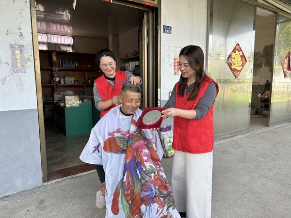 10月19日,江苏泰州市开展“泰金叶·真情系桑榆”系列志愿服务活动,图为志愿者给老人理发。(图片来源:人民网)
