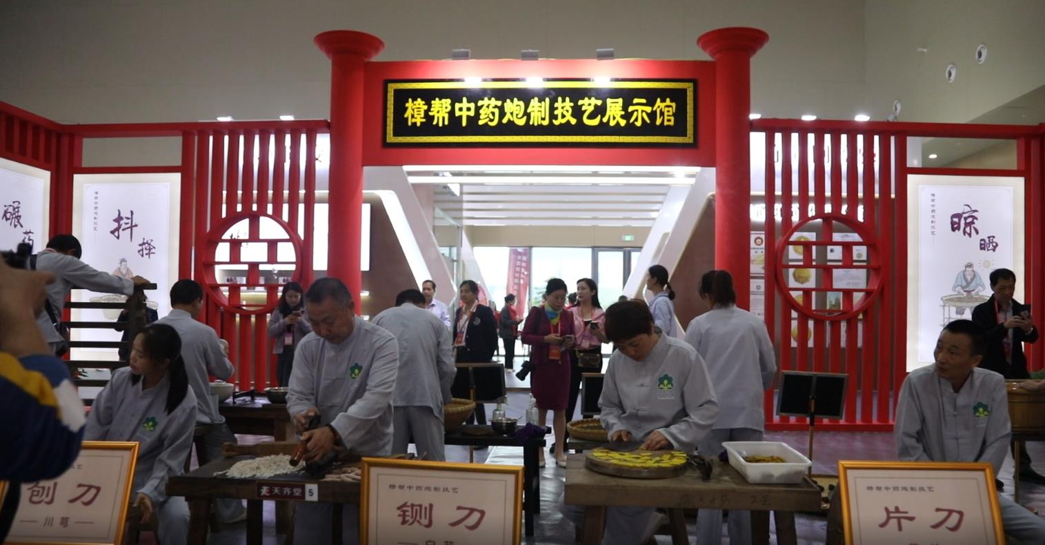 10月19日,第54届全国药材药品交易会主展馆中医药炮制技艺展区,几位传统炮制药工轮番展示樟帮“绝活”。(图片来源:中新社)