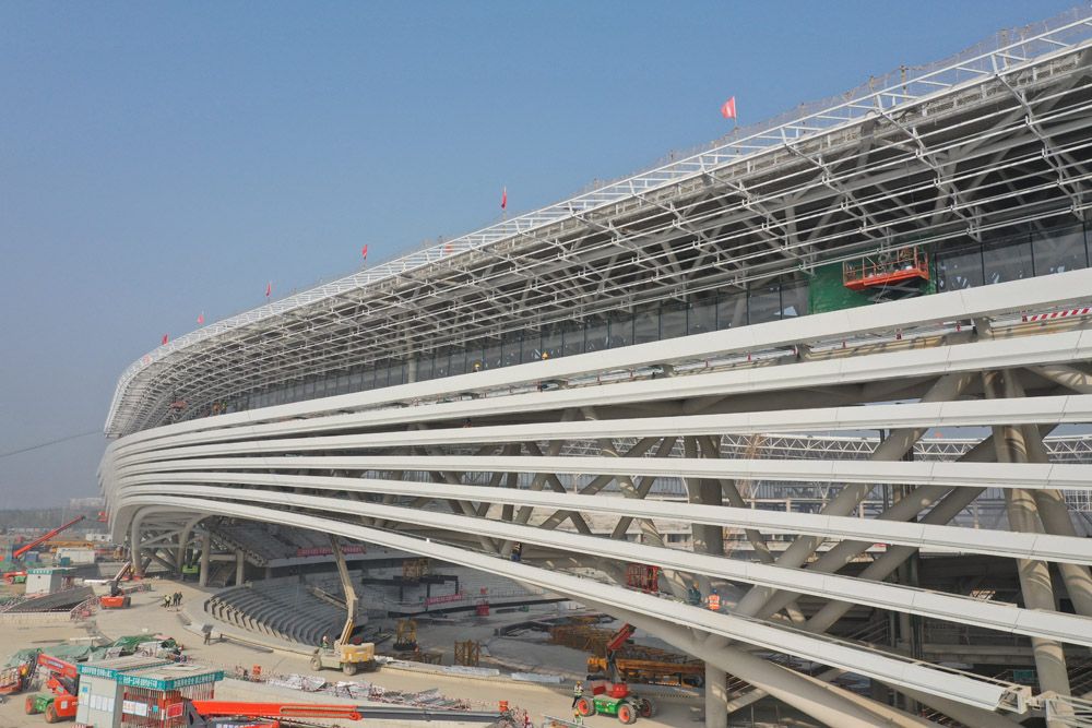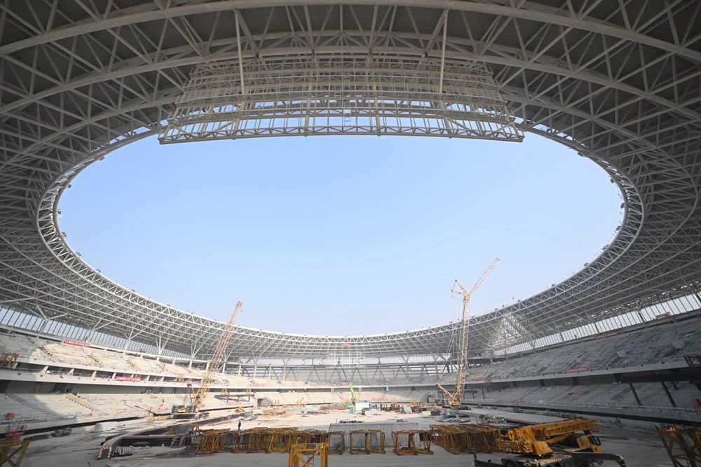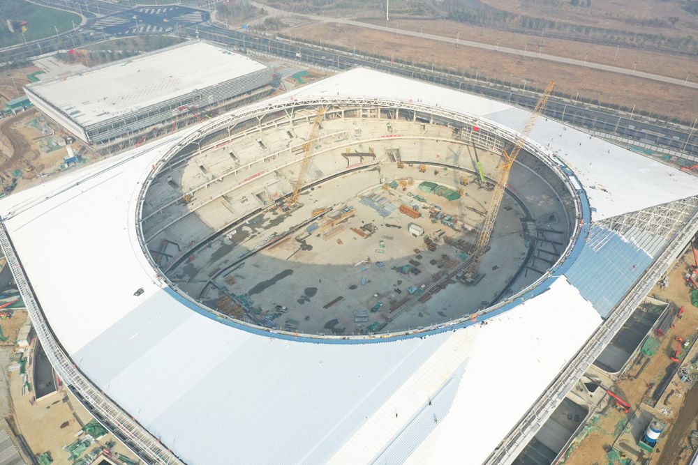 建设中的雄安体育中心体育场内景。