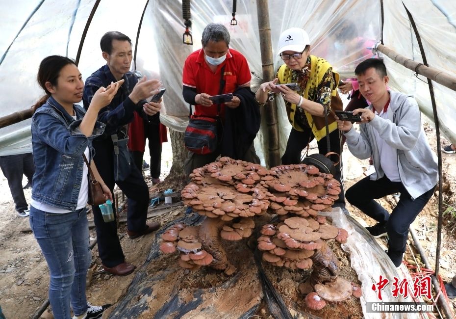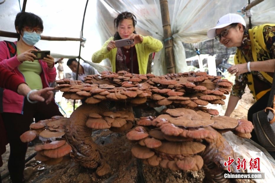 游客观赏基地自主选育的云乐赤芝4号。