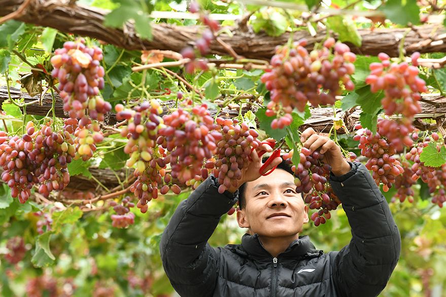 10月24日,果农在云南省丽江市古城区大研街道文智社区的一家葡萄种植基地采摘葡萄。