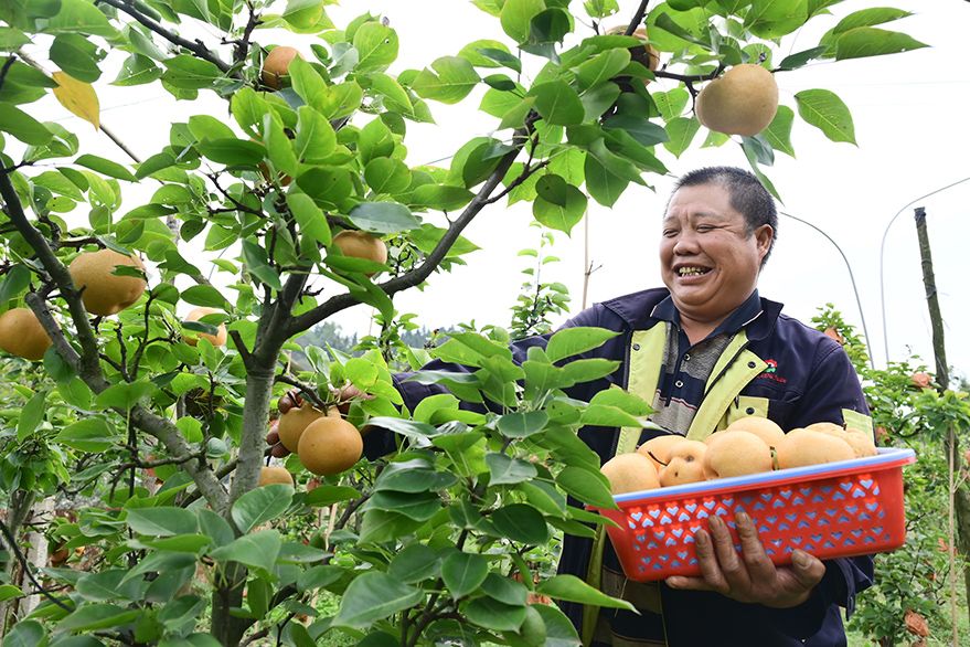 10月11日,村民在贵州省毕节市百里杜鹃管理区普底乡颖川村采收黄梨。
