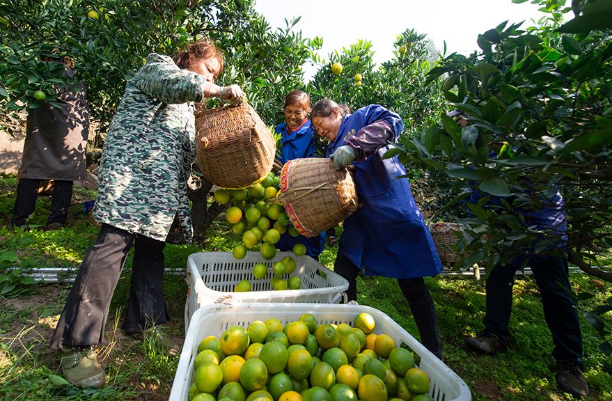 10月24日,湖北省宜昌市秭归县归州镇屈原庙村村民在收获柑橘。