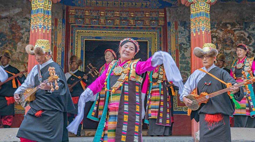 日喀则市谐钦则起源于1883年,其韵调古朴,表现独特,显示出浓郁的西藏风景和鲜明的地方特色。