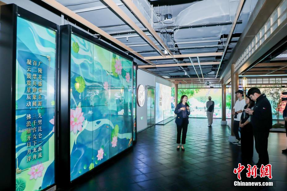 【“数字大运河”:科技加持 生动呈现江南运河的人文底蕴】 大运河不仅有着深厚的历史底蕴,还有高科技的加持。在浙江省嘉兴市南湖区的大运河数字诗路e站南湖体验中心,采风团观看数字化呈现的大运河相关诗词及景色。该体验中心以实体场景和数字平台同步建设推进的方式,融入文字、影像、VR、全息投影等新媒体技术。