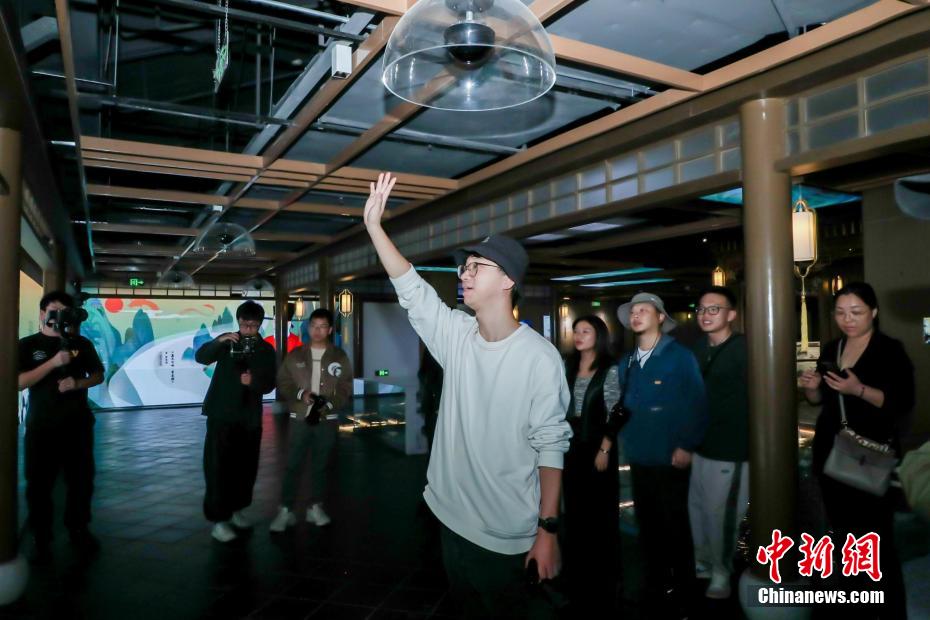 体验中心通过主题展区和互动功能区,多方位展示大运河嘉兴段沿线诗词、景点、历史遗存和非遗文化等资源,生动呈现出江南运河的人文底蕴,是运河文化产业集聚和文化艺术沟通交流的平台。图为采风团成员参与互动体验。