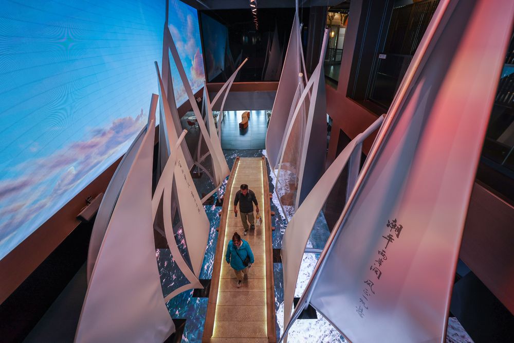 游客参观大运河数字诗路e站。(图片来源:新华社)