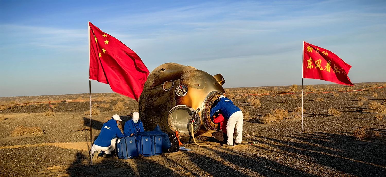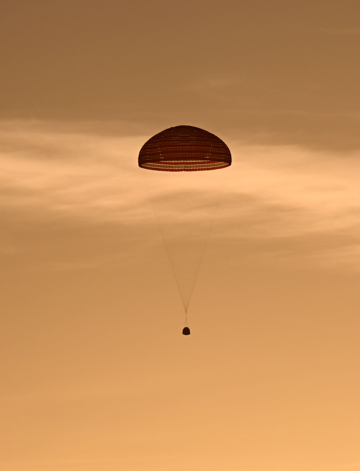 10月31日,神舟十六号载人飞船返回舱在东风着陆场成功着陆。