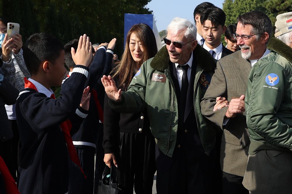 10月30日,中国人民抗日战争纪念馆迎来了美国飞虎队老兵哈利·莫耶和梅尔文·麦克马伦一行。现年103岁的莫耶和98岁的麦克马伦携30余位飞虎队员的后人赴华访问。