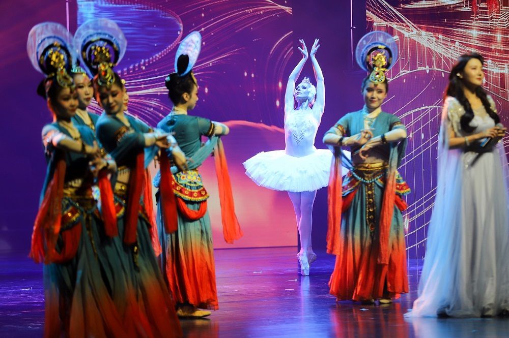 (图为丝艺节“一路同心”惠民巡演中,中外舞蹈演员同台献艺。图片均据主办方)
