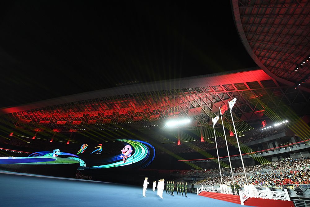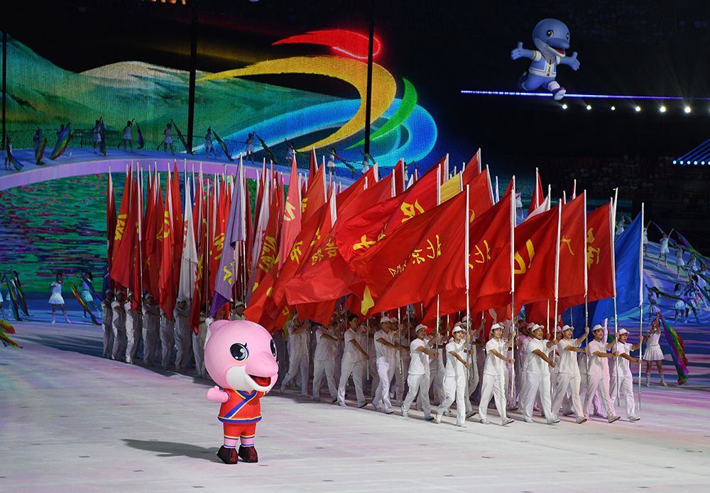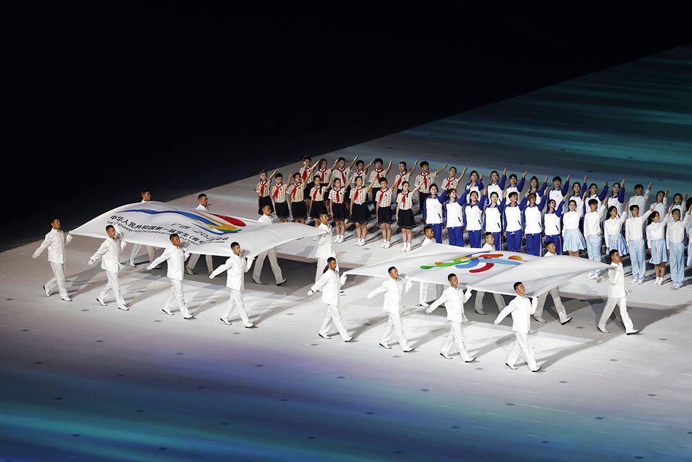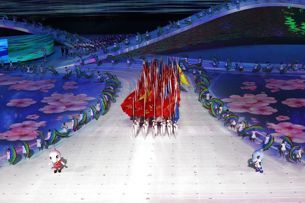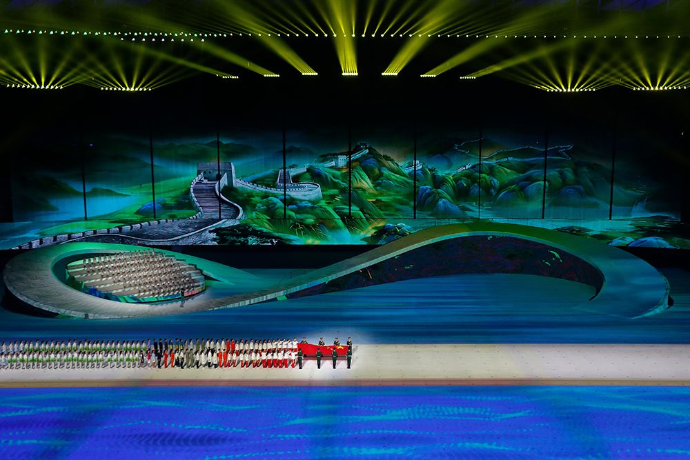中华人民共和国国旗在开幕式上入场。(图片来源:本文图片均据新华社)