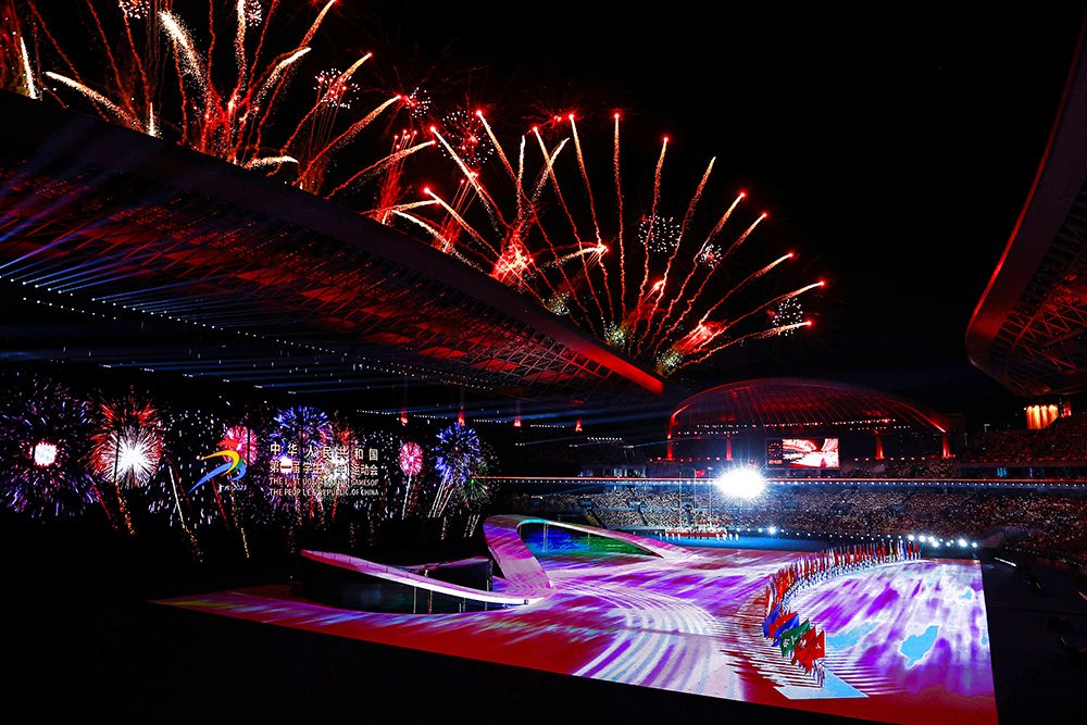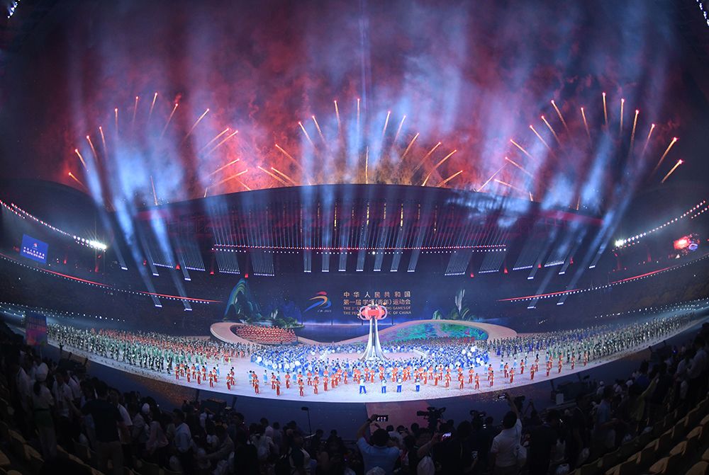 11月5日,第一届中国学生(青年)运动会开幕式在广西体育中心体育场举行。