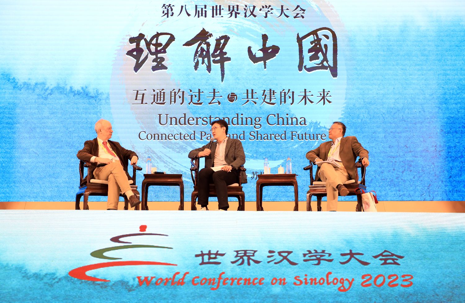 11月5日,中外嘉宾在第八届世界汉学大会现场进行对谈。(图片来源:中新社)