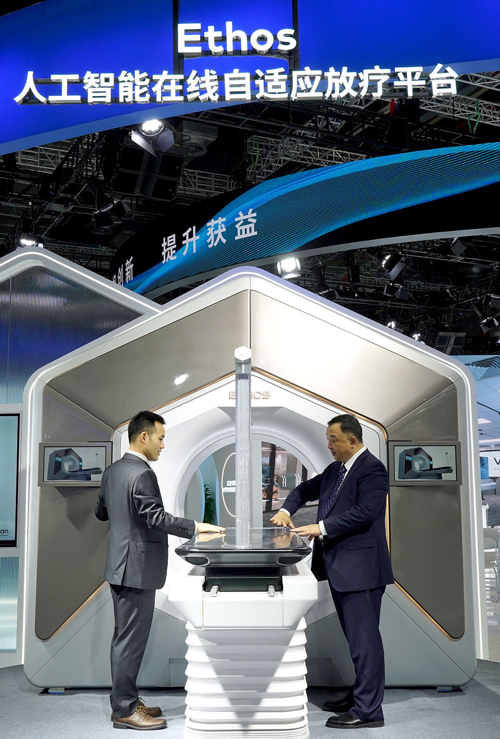 瓦里安展台展出全球同步首发的第二代Ethos人工智能在线自适应放疗平台。