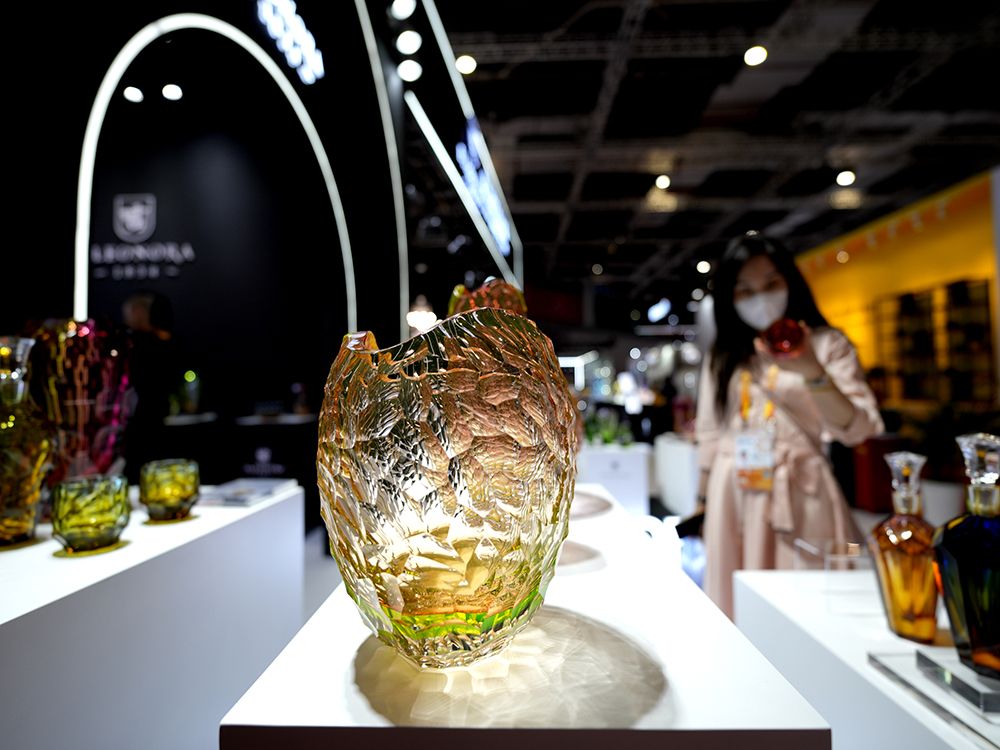 捷克欧若拉水晶展台参观首次展出的水晶新品。