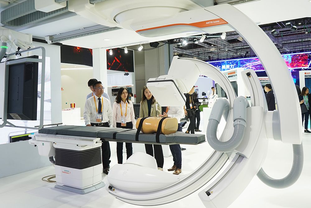 医疗器械及医药保健展区西门子展台拍摄的全球首款量子能谱血管造影系统。