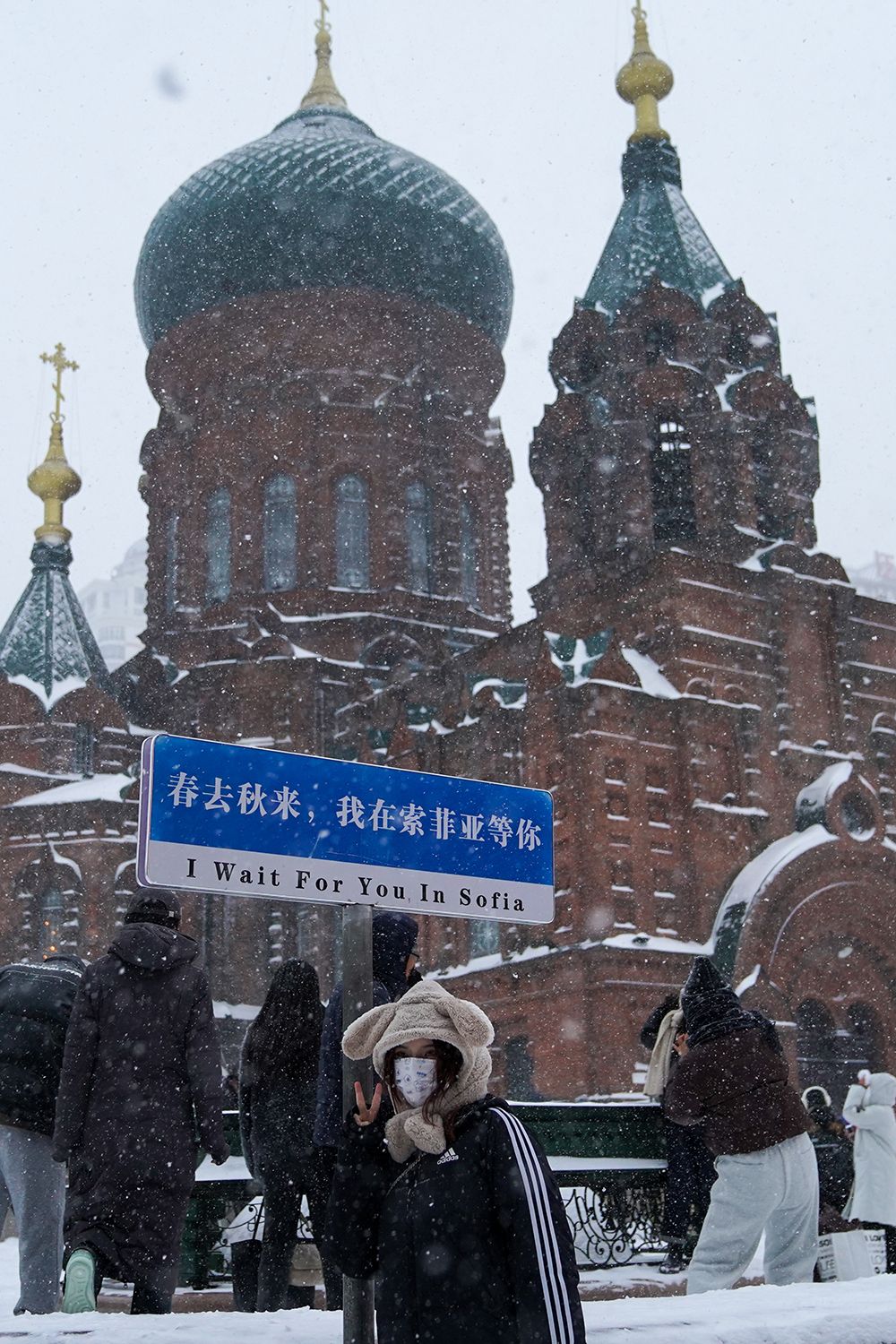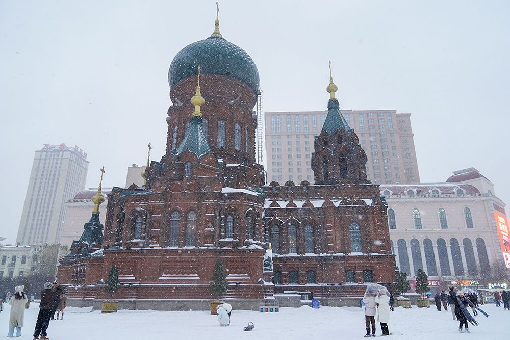 市民拍摄雪中的索菲亚教堂美景。