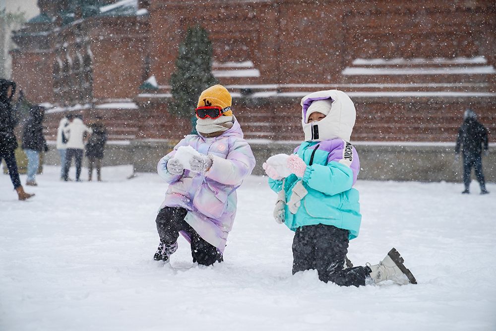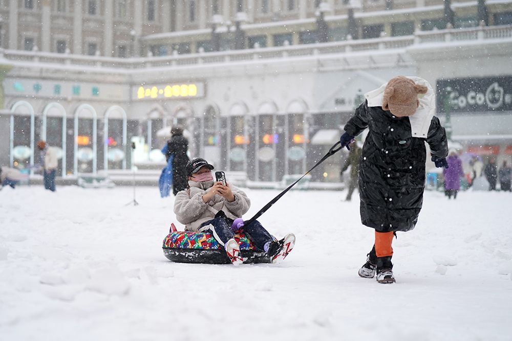 市民在雪中玩耍。