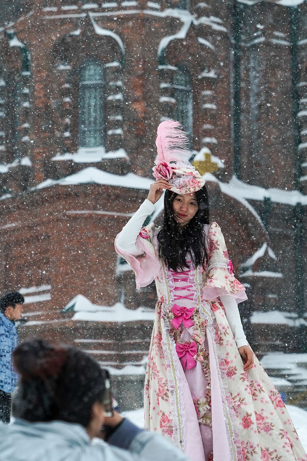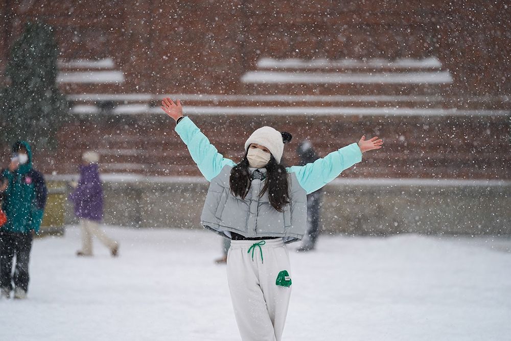市民雪中拍摄写真。