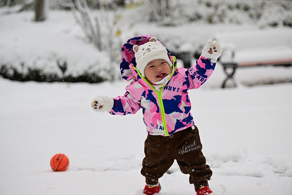小朋友在雪中玩耍。