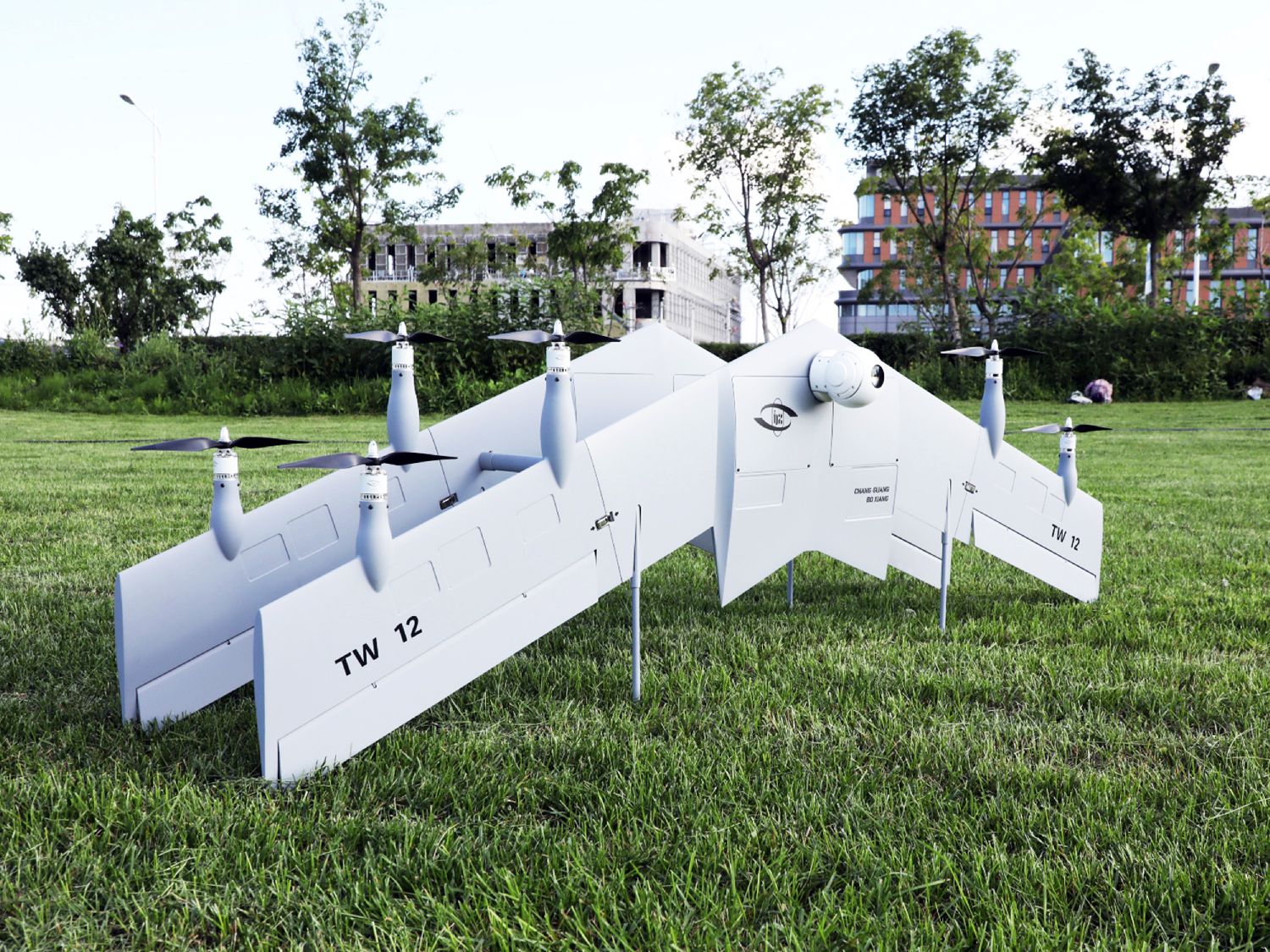 图为由中国科学院长春光机所自主研发制造的双飞翼垂直起降固定翼无人机。(图片来源:长春长光博翔无人机有限公司供中新社图)