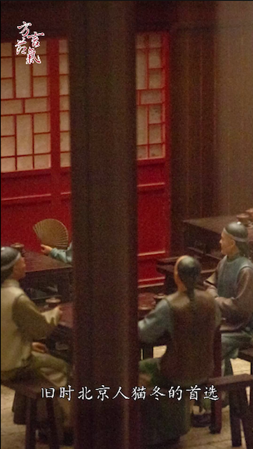 中国电视报道,懂得顺势而为的北方人,到了冬天多半喜欢待在暖和的房子里“猫冬”。旧时北京人猫冬的首选便是茶馆。上自达官显贵下至平民百姓,京城里各式茶馆为这些人们提供消遣、娱乐、餐饮等服务。