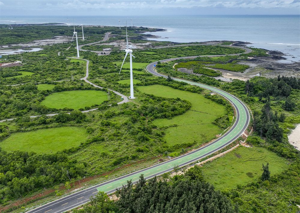 图为航拍海南环岛旅游公路儋州峨蔓段(资料图)。(图片来源:中新社)