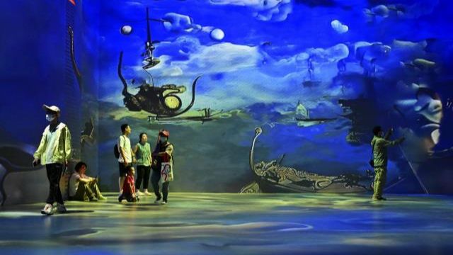图为观众在首钢园区观看AI“对画”达利沉浸式艺术展。(图片来源:中新网)