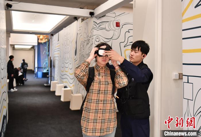 图为1月9日,游客穿戴VR设备体验沉浸式VR展。(图片来源:中新网)