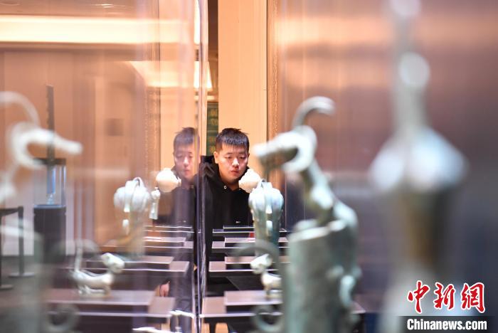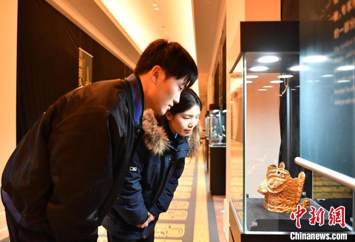 图为1月9日,游客参观文物展区。(图片来源:中新网)