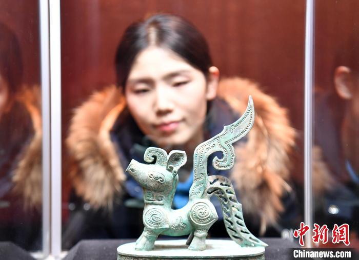 图为1月9日,游客参观展品青铜神兽。(图片来源:中新网)