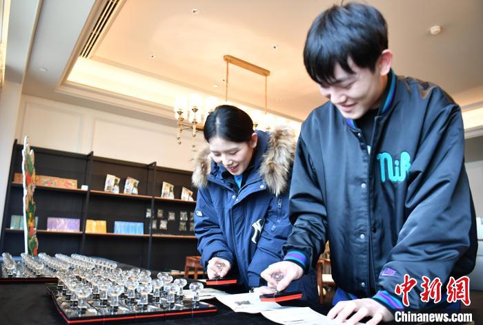 图为1月9日,游客在文创区体验集章文牒。(图片来源:中新网)
