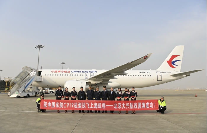 1月9日,中国东方航空公司C919大型客机开始执行上海虹桥—北京大兴航线的商业航班,这是东航C919继上海虹桥—成都天府常态化商业运营之后,执行的第二条定期商业航线。