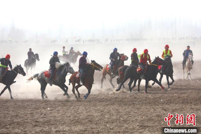 14日,新疆疏勒县牙甫泉镇举办了“迎新春民俗文化旅游节”之赛马刁羊比赛。(图片来源:中新网)
